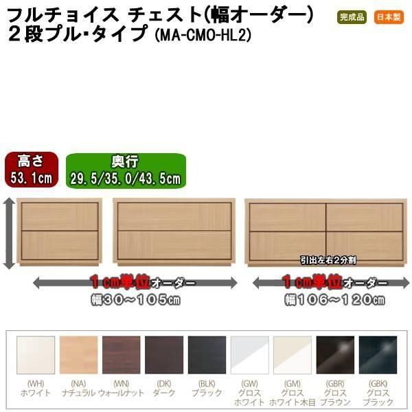 幅オーダーCOMO チェスト プルタイプ 2段幅30-120cm(高さ53.1x奥行29.5/35.0/43.5cm)