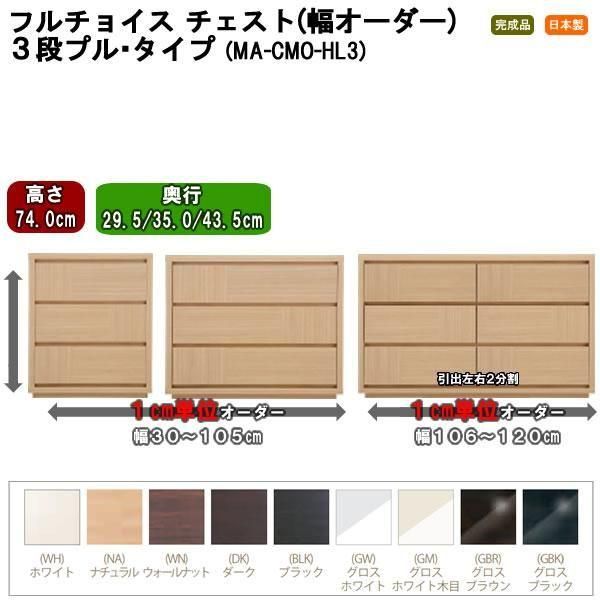 幅オーダーCOMO チェスト プルタイプ 3段幅30-120cm(高さ74.0x奥行29.5/35.0/43.5cm)
