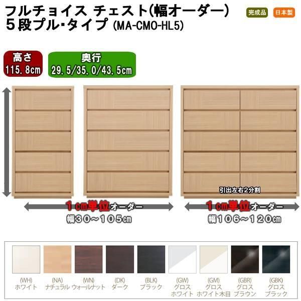 幅オーダーCOMO チェスト プルタイプ 5段幅30-120cm(高さ115.8x奥行29.5/35.0/43.5cm)