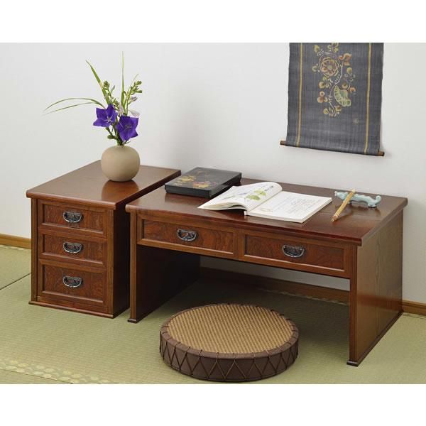 和風家具 S6553 秋草 脇置き 三杯引 けやき色(幅32x奥行45x高さ37cm)