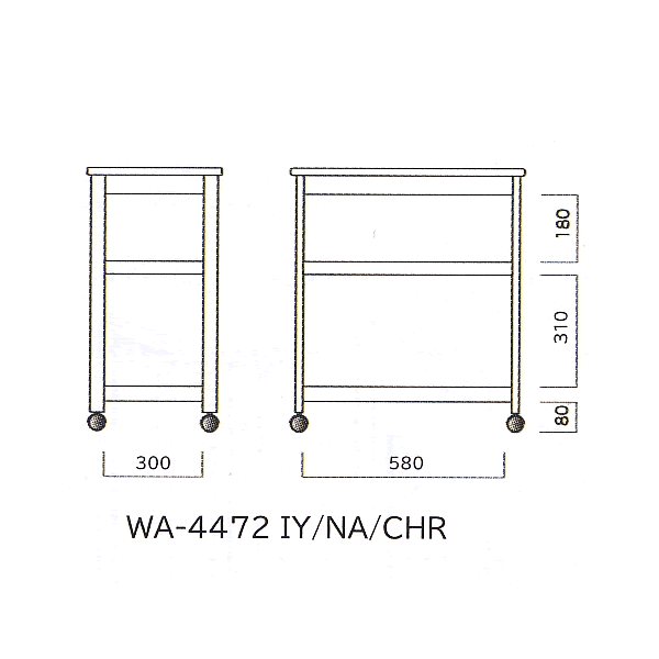 カバ材キッチンワゴン/キャスター付 WA-4472CHR (CHR色 幅64x奥行36x高さ70cm)