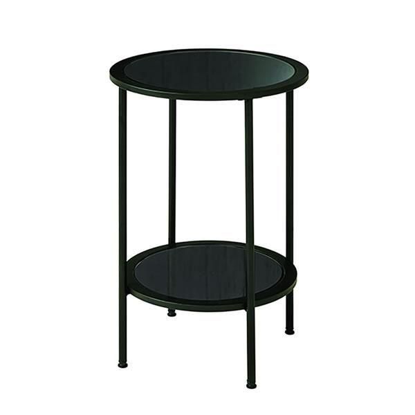 ブラック強化ガラス天板にスチールフレームのサイドテーブル