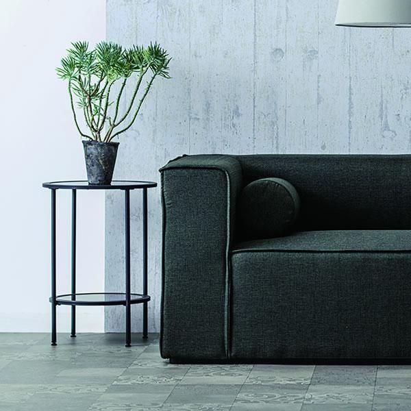 円形のブラック強化ガラス天板にスチールフレームのサイドテーブルがお部屋の雰囲気を引き締めてくれます。カフェテーブルやフラワースタンドとしても使えますね。